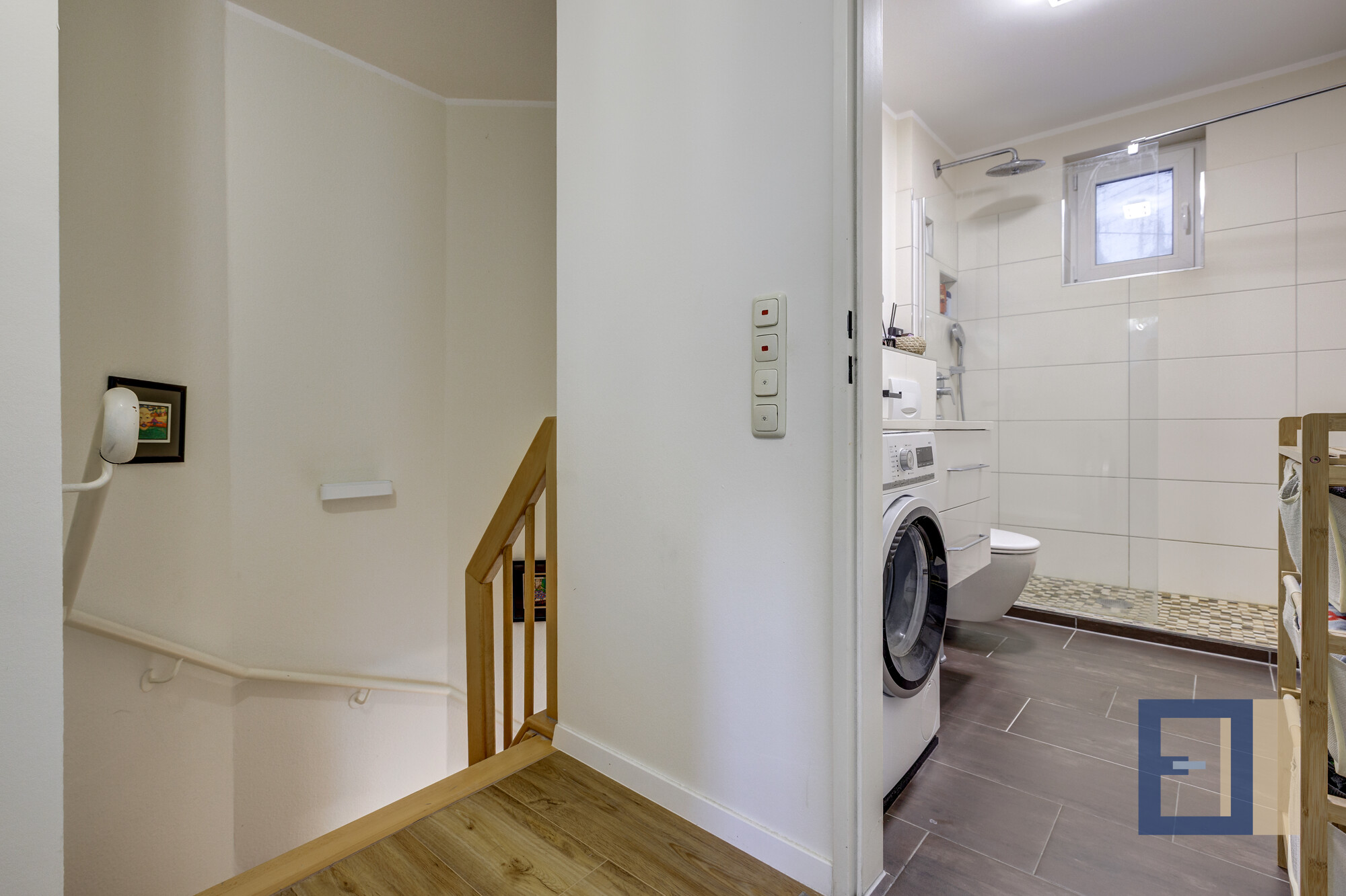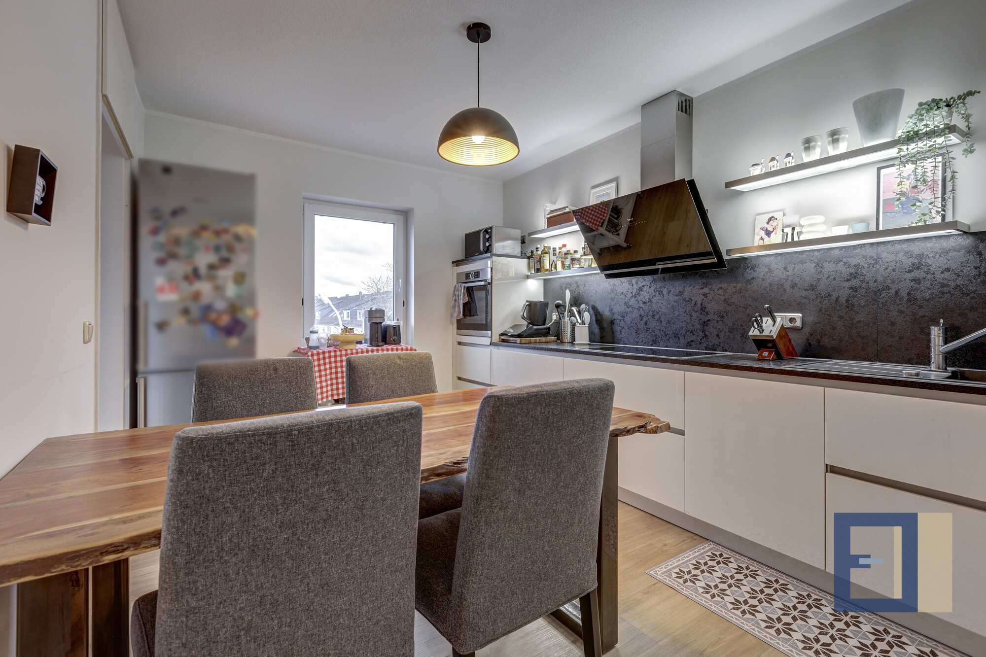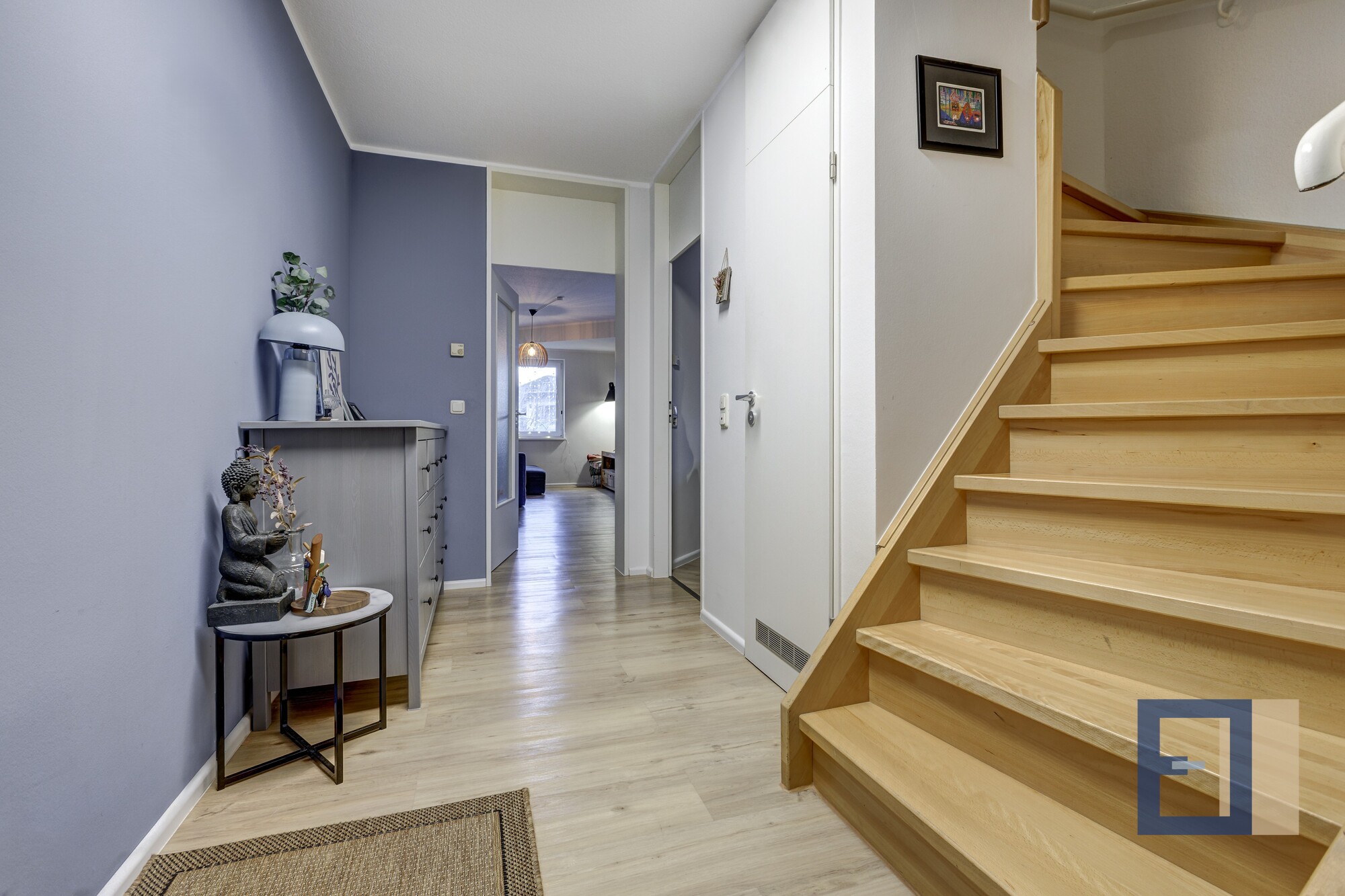 •Maisonettewohnung (3 Zimmer, 86,86 m²) in Rüsselsheim-Bauschheim •Maisonette-Eigentumswohnung im 2. Obergeschoss und Dachgeschoss •In einem Mehrfamilienhaus mit Aufzug •In einer Eigentümergemeinschaft aus 2 Häusern – Wohneinheiten insgesamt: 38 – Wohnungen in diesem Haus: 19 •Baujahr des Hauses: 1992, Wohnung 2018 kernsaniert •Gesamtzustand: sehr gepflegt, saniert, modernisiert Ausstattung & Extras •2 Süd-Balkone in der Vormittags-/Nachmittagssonne •Kellerraum •Dachboden •Fenster: aus Kunststoff mit Dreifachverglasung •Fliegengitter an Fenstern •Waschmaschinen-/Trockneranschluss im Bad •Kabel-TV •Hausmeister Bäder •Tageslichtbad mit bodenebener Dusche, WC, Waschtisch, Handtuchwärmerheizung, Waschmaschinenanschluss •Innenliegendes Gäste-WC mit Toilette und Waschbecken Küche •Inklusive Einbauküche aus 2018 (im Wohnungspreis enthalten) mitsamt Induktionskochfeld, Backofen, Spüle, Geschirrspüler, Dunstabzug, Kühl-Gefrier-Kombination, Mikrowelle Heizung & Energie •Zentralheizung (wird ausgetauscht), Energieträger: Erdgas •Warmwasserversorgung über Heizungsanlage •Fußbodenheizung Bodenbeläge •In Wohnzimmer, Schlafräumen, Küche, Diele und Flur Vinyl •In Bad und Gäste-Toilette Fliesen Bauweise & Dämmung •Massivbauweise •Satteldach mit unterschiedlichen Dachneigungen, gedämmt Stellplätze •Ein Tiefgaragenstellplatz ist für 10.000 € zusätzlich zu erwerben. •Ein Außenstellplatz kann gemietet werden (Miete monatlich ca. 20,- bis 30,- €). Nutzung & Verfügbarkeit •Frei werdend •Beziehbar nach Vereinbarung Sanierungen / Modernisierungen Kernsanierung 2018: •Neue Fenster in der gesamten Wohnung eingebaut •Leitsysteme für Strom teilweise erneuert (Stromleitungen in Bad und Küche sowie Verteilerkasten) •Vollständige Erneuerung des Bads •Installation der neuen Einbauküche •Einbau des neuen Aufzugs im Haus Hausbau 1992: •Dämmung des Daches